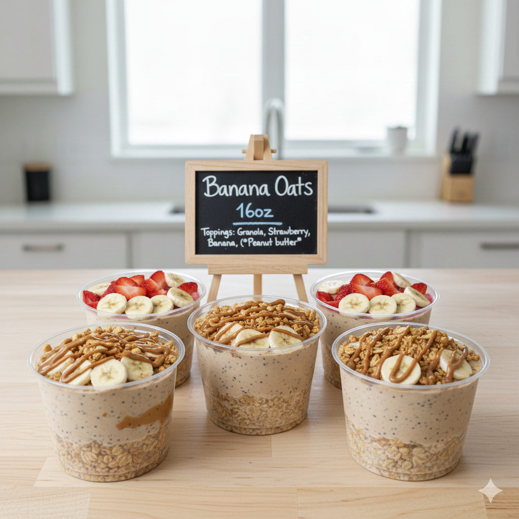 Add your favorite toppings: Peanut butter, Oats, Banana