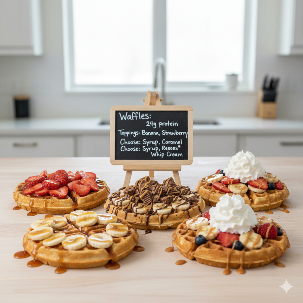 Delicious, energizing, high-protein meals made for everyone. Healthy fast food, low-sugar shakes, power bowls, waffles, and more—quick, fresh, and nourishing.
